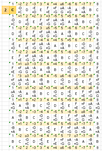 Le tableau des plagiats, ci-gauche, nous informe sur les possibilités altératives des notes. Ce qui est aussi des compressions situées aux extrémités, et venir ainsi épurer l'utilisation des altérations. Ce n'est pas une règle obligatoire, mais elle est utile pour la répartition des altérations, c'est aussi ce tableau qui nous guide à l'utilisation des extensions.