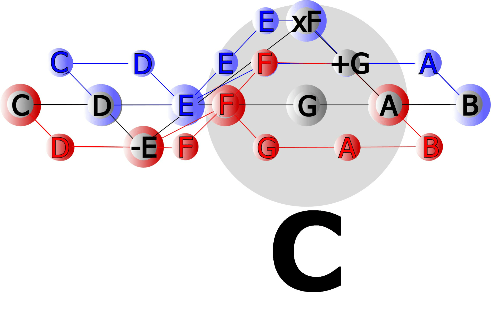 Exemple : Cette série de gammes majeures limitées à la note naturelle (C maj. D maj. E maj. F maj. G maj. A maj. B maj). Et, comme l’altération est un système de modulation de la tonalité. Nous pourrions avoir comme gamme, celle de ##E maj. Ou bien, bbbE maj…