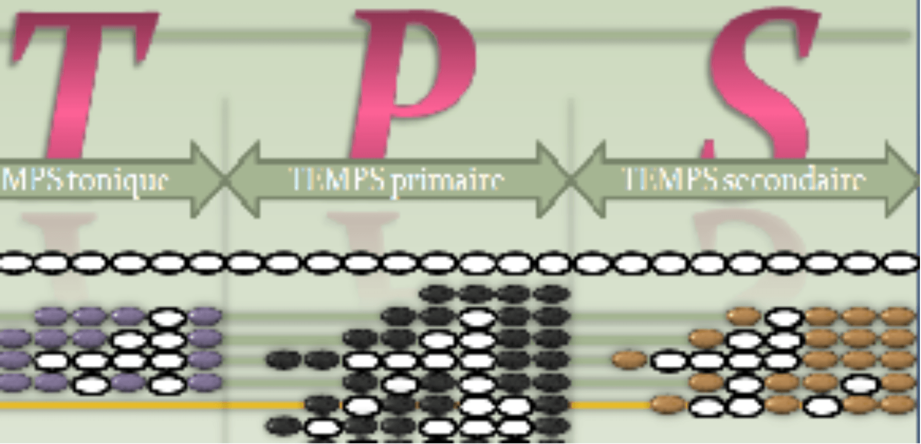 À cause de la dynamique diatonique, l’onde tétracordique dessine des formes conjuguées en séquence dans le temps harmonique.