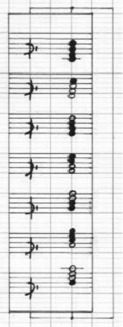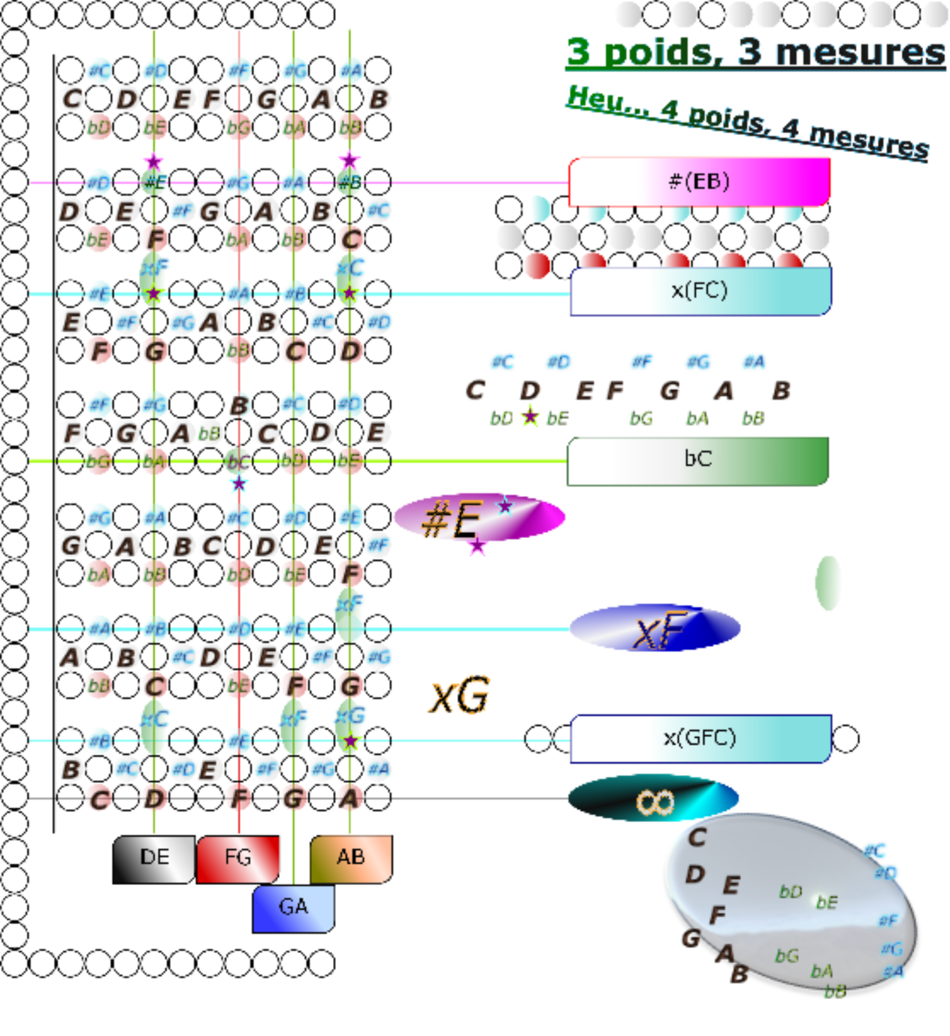 Voilà une simulation de création de concept, le thème choisi à l'étude, est un élément des gammes à intervalles équidistants. Le support matriciel est la séquence de ½ tons, relatif a la gamme chromatique. L'exemple n°3 se constitue de trois notes, développées en cycles (retour a la limite sciemment placée).