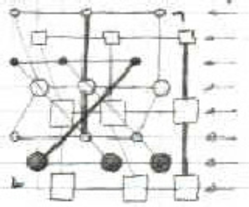 Ensuite, se sont effectués les liaisons inter notes, et là est mon champ visuel. Mon but de recherche était, entrevoir des effets de relief.