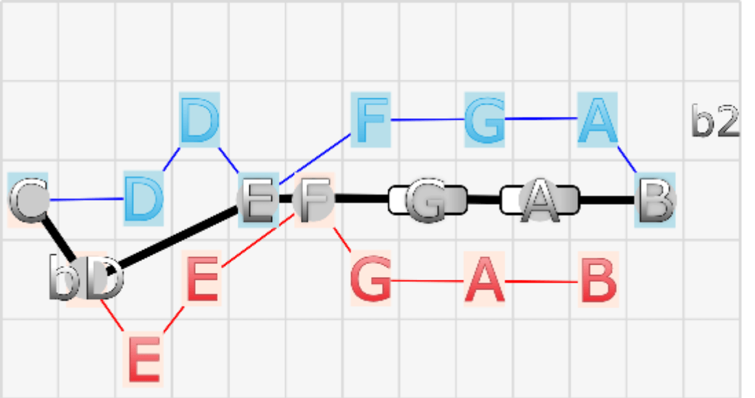 Et d’une organisation chromatique supposée b {1, b2, 2, b3, 3, 4, b5, 5, b6, 6, b7, 7, 8}