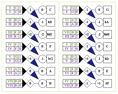 o 1er. Soit par répartition des modèles diatoniques sur un axe.