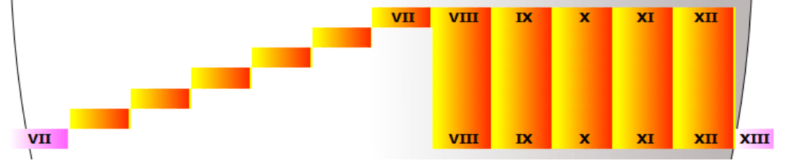 Dans la page précédente, on voit l’exemple d’un cluster entier. Ce qu’il y est censé être significatif, mais posons un cluster de six notes, comme ci-dessus, dans un espace dodécatone. Le cluster est entier, et il reste des places vides. Qui dit vide, dit espace libre pour les mouvements des éléments. Avant, que çà ne se produise. On peut développer ce cas clustérien, de façon chronologiquement ordonnée. Ainsi, nous pourrons déclarer quelques statistiques supplémentaires, au sujet du domaine clustérien !