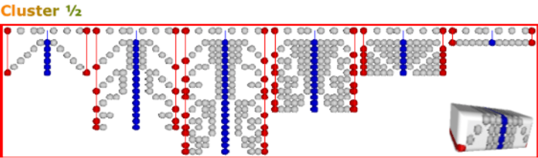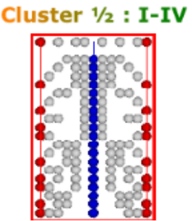CLUSTER ½ : Possède une première tonique toujours à l’axe des deux octaves, qui limitent le développement classique clustérien. Et, ses quantités d’éléments sont d’ordre impairs : 3, 5, 7, 9, 11, 13.