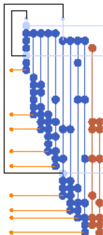 Dans le sens circulant au fil des arcs, qui constituent la forme bool. Et en voyant le nombre important de formes d'arcs, On peut, à partir d'un point, y dessiner une spirale carrée. On a là, une forme simplement définie… Ce genre de phénomène sied à une opération unique de mise à jour, du plan matriciel définissant les arcs. Ainsi cette technique ressort de nombreux croquis, d'où le rapport des arcs, donne une séquence de degrés...