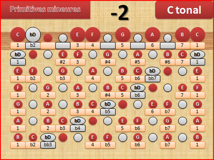 Dans le groupe des primitives mineures, il y a la gamme de C sensible ( septième mineure ).