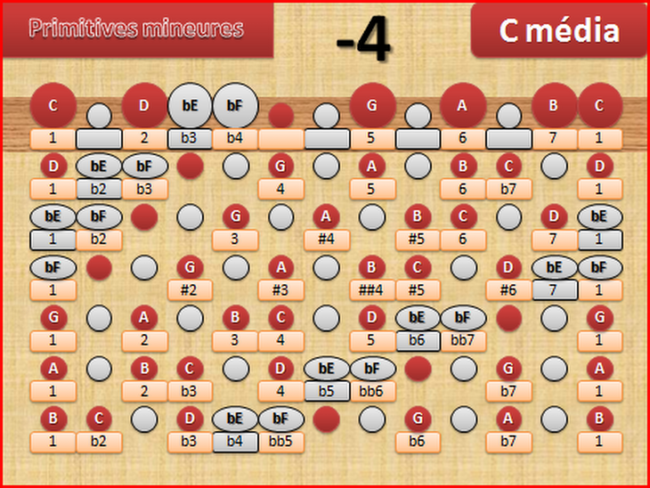 Dans le groupe des primitives mineures, il y a la gamme de C média ( quatrième mineure ).