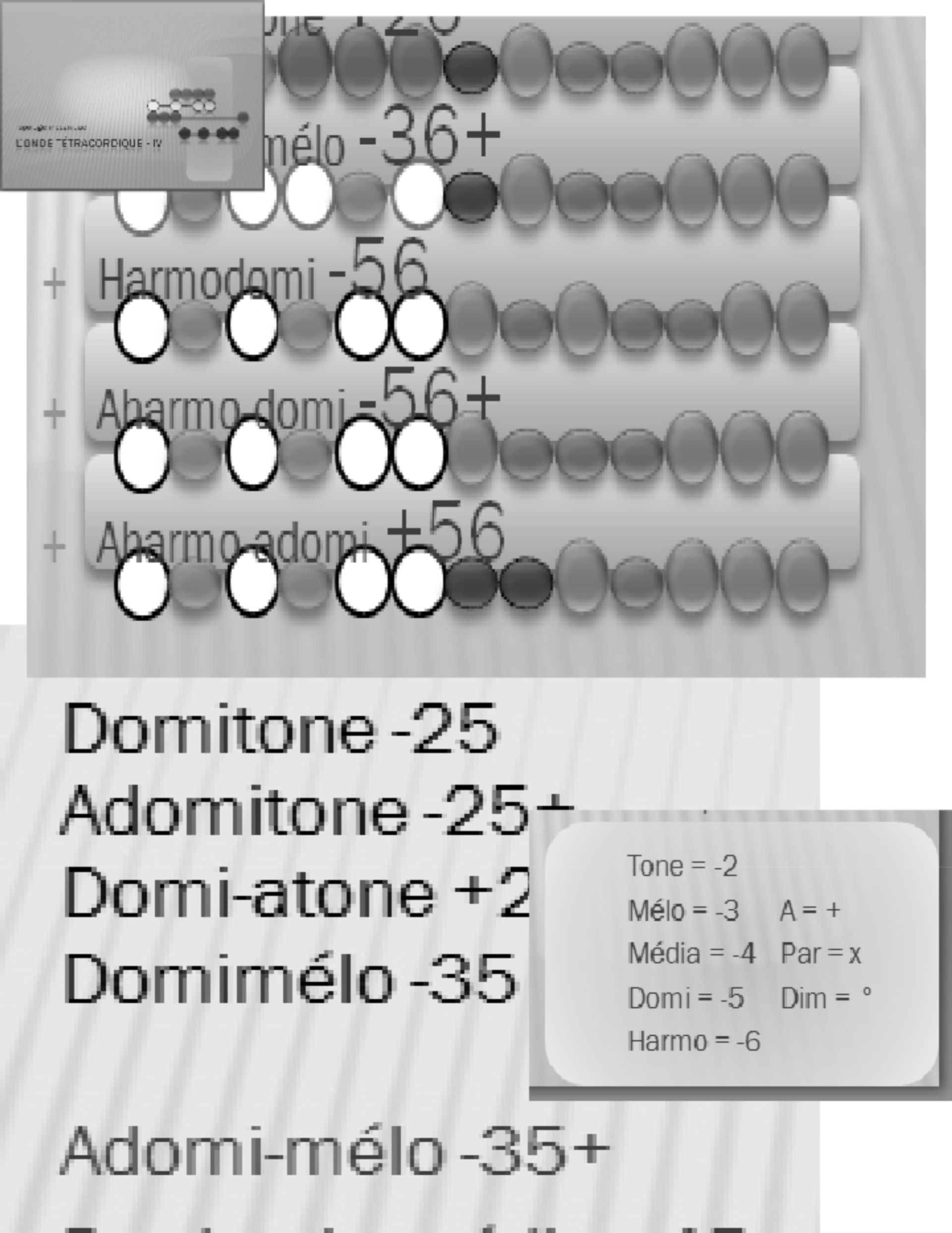 Le classeur associé contient une intégration tétracordique, à laquelle on a fait la remarque du signe diatonique majeur. En démontrant, par les tétracordes majeurs, la position harmonique des influences absolues.